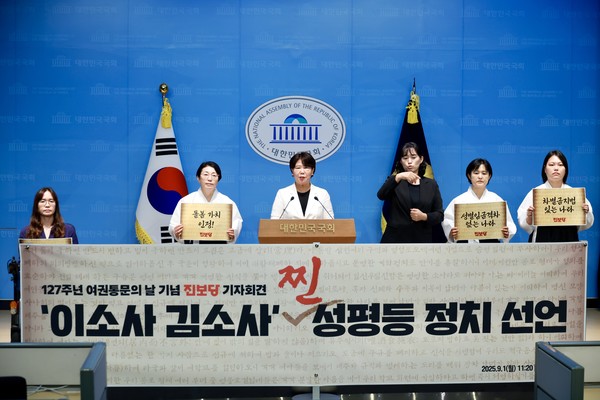 진보당은 9월 1일(월) 오전 11시 20분 국회 소통관에서 ‘여권통문의 날’ 127주년을 맞아 성차별 해소를 촉구하는 기자회견을 열었다. 기자회견에는 장지화 공동대표(성남시장 출마), 이근미 여성-엄마당 당원(구로구의원 출마), 김수림 청년당원(강서구의원 출마), 박윤희 간호사(의정부시의원 출마), 김현숙 장애인위원회 위원이 참석해 성평등 정치 실현을 촉구했다.