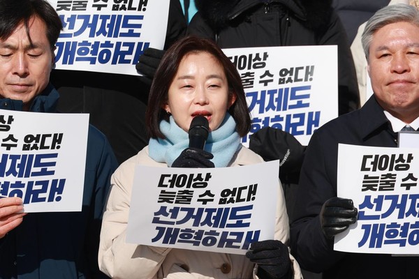 발언에 나선 김재연 진보당 상임대표는 더불어민주당을 향해 날카로운 쓴소리를 던졌다. 김 상임대표는 “거대 양당의 기득권 정치를 내려놓겠다”고 공언했던 2022년 이재명 당시 대선 후보의 발언을 상기시키며 “선거를 앞둔 민주당이 야당일 때와 여당일 때가 달라서는 안 된다”고 꼬집었다. 그는 “거대 양당의 적대적 공생 관계 속에서 국민은 울며 겨자 먹기로 차악을 선택해야 했다”며 “정치개혁 없이는 진정한 국민주권시대를 맞이할 수 없다”고 강조했다. 이어 “진보당은 제 정당 및 시민사회와 연대하여 민주주의를 위한 광장의 약속을 반드시 지켜내겠다”고 다짐했다.
