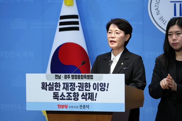 전종덕 의원은 전남·광주 행정통합특별법과 관련한 문제를 연이어 제기했다. 2월 3일에는 전국농민회총연맹, 진보당 전남도의회 박형대·오미화 의원, 이석하 영광군지역위원장과 함께 국회에서 기자회견을 열고, 전남·광주 통합특별법의 졸속 추진을 비판하며 농어촌기본소득 전면 시행과 농지파괴 독소조항 삭제를 촉구했다.