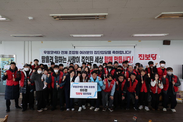 집단 입당식에 함께한 정 의원에게 우창코넥타 신입당원들은 “불법적인 기획파산에 맞서 투쟁하는 노동자들 곁에서 함께 싸우는 의원과 진보당에 감사드린다”며 입당원서를 내밀었다.